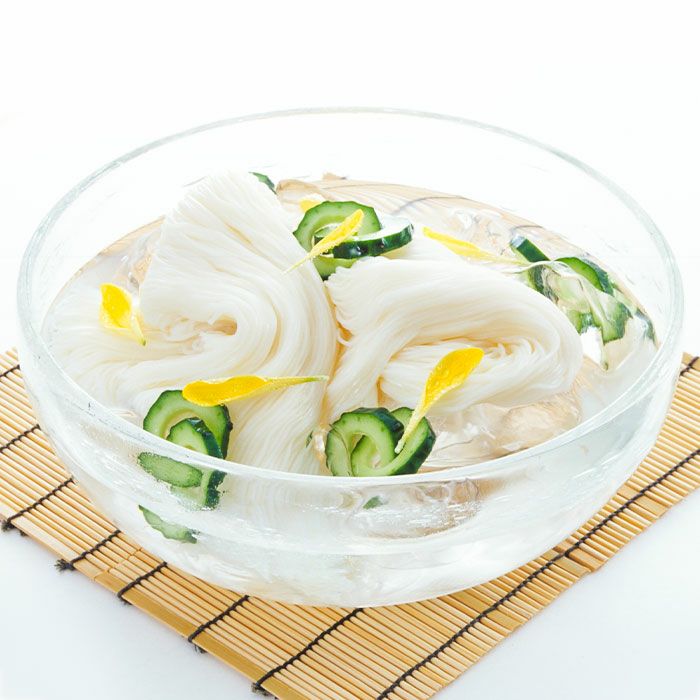 他の画像を見る 三輪素麺 奏 吉野本葛と国産小麦を使用した、最高級手延べ素麺 三輪素麺 奏 販売価格 ¥ 3,800 税込 厳選した国産小麦粉に吉野本葛粉を贅沢に練り込み、伝承の手延べ技術と独自の「本腰熟成製法」で丹念に仕上げた。絹糸のような細さとは裏腹に、強いコシと旨みが感じられ、爽快なのど越しも特筆モノ!まさに匠の技が奏でる上質な味わいだ。 詳細を見る お気に入りに登録する