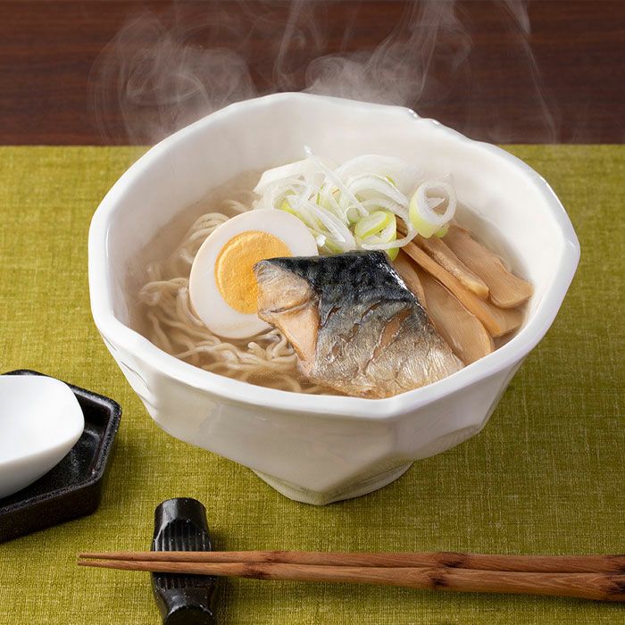 サバでだしをとった風味豊かなあっさり系!さばの塩焼き付き・常温で保管できます。石巻地域産学・異業種連携開発商品です。