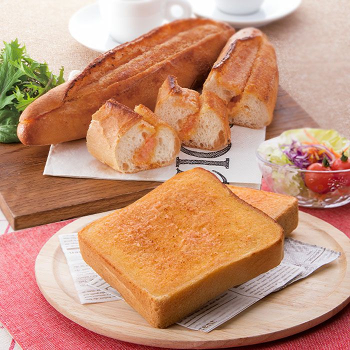 明太子屋がこだわって作った、明太フランスと明太トーストのセットです。明太フランスは、無着色明太子と国産の無塩バターを使い、明太子屋がこだわった「特製明太バター」をソフトフランスパンの表面にある切れ目の表面と、端まで塗りこみました。明太トーストは、無着色明太子に国産無塩バターを合わせた 特製明太バターをたっぷりと塗ったいます。明太バターと小麦の香りをお楽しみください。