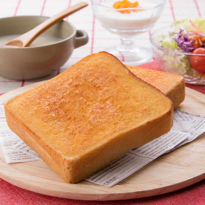 無着色明太子と国産の無塩バター使った特製明太バターをほんのり甘い厚切り食パンの表面に塗りました。 明太子屋こだわりの「無着色明太子」をたっぷり使用しています。焼きたては歯ごたえサクッ!明太バターがじゅわっ。バターと小麦のかおりが漂い食欲をそそります。