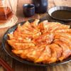 遠州産の希少な『とこ豚』を100%使用。手ごねによりその旨みを引き出した餡には、手切りした新鮮野菜がたっぷり。そこに、自家製ラー油を練り込み、旨辛な肉汁がたまらない浜松餃子に仕上げた。ラー油が染みて色づく薄皮も相まって、ビールとの相性は最高だ。