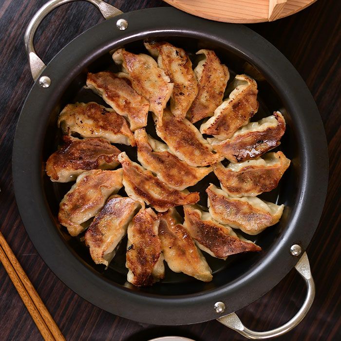 具材の豚肉は「鹿児島黒豚」を100%使用。通常の餃子の具よりも豚肉の比率を上げ、肉の食感と旨みをアップさせてジューシーに仕上げました。旨みがぎゅっと詰まった鹿児島黒豚に加え、国産野菜100%で作った新鮮素材たっぷりの生餃子です。具材を包む皮の小麦粉も全て国内産です。