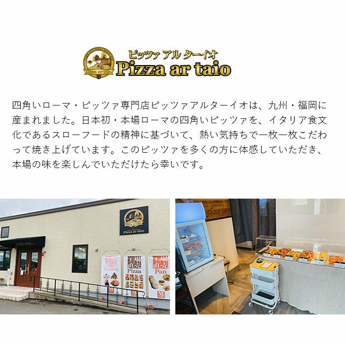 他の画像を見る 手のひらピッツァ5枚セット(ハーフサイズ) 本場ローマの四角い切り売りピザ 手のひらピッツァ5枚セット(ハーフサイズ) 販売価格 ¥ 3,680 税込 ローマの名店で腕を磨いたシェフ。15年前にこの四角いローマピッツァを日本に初上陸させた。石臼挽きの福岡県産小麦をベースにした生地は、高加水&長時間熟成で、外はザクッ、中はふわもち。その上では、九州産食材やイタリア産チーズが華やかなハーモニーを奏で、満足度もひとしお! 詳細を見る お気に入りに登録する