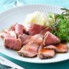 奈良の人気鉄板ステーキ店『シェルブルー』の山口シェフが監修。丁寧に手仕込みし、低温加熱で絶妙に火入れしたローストビーフは、しっとり柔らか。赤身肉の旨みと多種のスパイスが交錯する奥深い味わいで匠の技を実感できる。ソース付きでギフトBOXに。