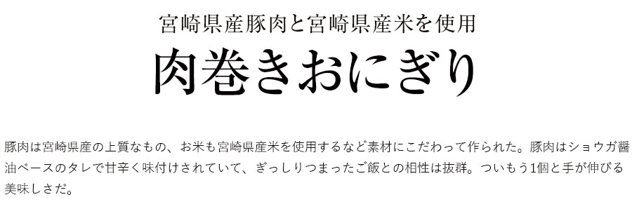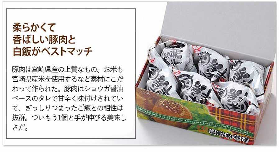 豚肉は宮崎県産の上質なもの、お米も宮崎県産米を使用するなど素材にこだわって作られた。豚肉はショウガ醤油ベースのタレで甘辛く味付けされていて、ぎっしりつまったご飯との相性は抜群。ついもう1個と手が伸びる美味しさだ。