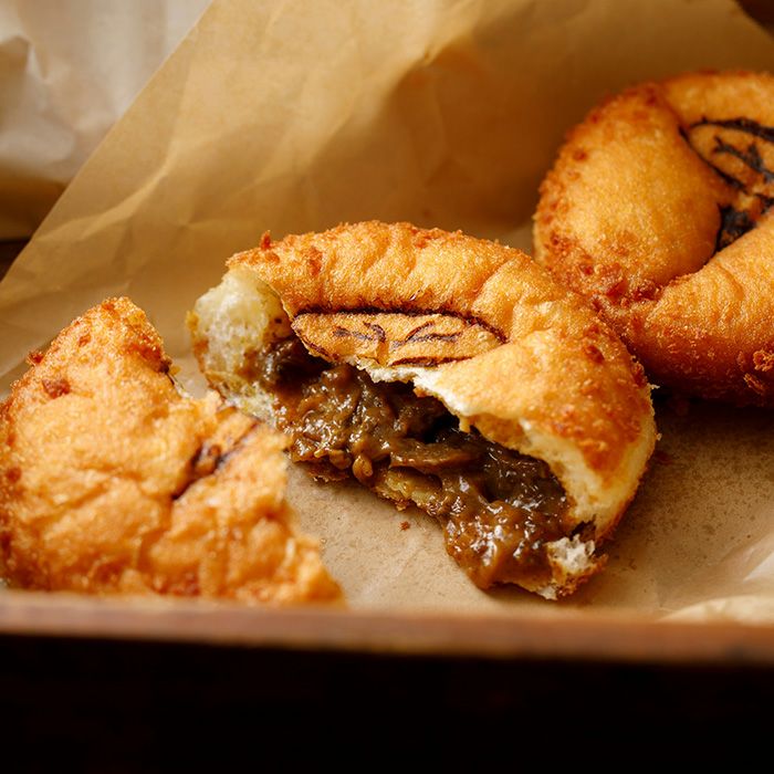 日本カレーパン協会主催のカレーパングランプリ2019東日本揚げカレーパン部門金賞、2021西日本揚げカレーパン部門金賞と東西受賞を果たした当店人気No1商品「自家製牛すじ煮込みのカレーパン」にチーズをトッピングしました! 隣の味処で長年お客様に愛されている「牛すじ煮込み」とコラボして誕生。国産の牛すじ肉をホロホロになるまで丸一日以上秘伝の出汁と共に煮込み、和風出汁がふんわり香るルーとなっています。生地はカレーに合うようにもちもちっとした少し甘味のある生地。最後に自家製のパン粉で歯切れの良いサクッとした食感に仕上げてあります。辛さを抑え、小さなお子様からご年配の方まで楽しめるカレーパンです。チーズとカレールーを合わせて包むことでよりマイルドな味わいとなり、特に女性のお客様から大変人気の商品となっています!