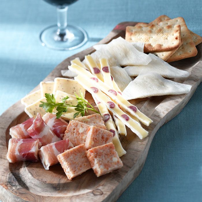 ダシでほぐした紅鮭にカマンベール入りチーズを合わせてテリーヌにしたり、桜チップで燻したサラミ&チーズを魚のすり身で挟んだり。老舗の珍味専門店によるチーズ尽くしのつまみ5種は、ワインが進む味のオンパレード!