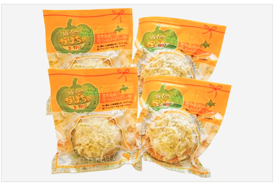 ○名称:北海道 坊っちゃん南瓜丸ごとグラタン ○内容量:坊っちゃん南瓜丸ごとグラタン230g×4個 ○原材料名:かぼちゃ(北海道産)、牛乳、乳等を主要原料とする食品、とうもろこし、ナチュラルチーズ、鶏肉、小麦粉調製品(小麦粉、バター)、たまねぎ、クリーム(乳製品)、脱脂粉乳、砂糖、本みりん、しょうゆ、食塩、醸造調味料、野菜エキス、食用なたね油、チキンエキス、こしょう、乾燥パセリ、ナツメグ/増粘剤(加工でんぷん)、トレハロース、(一部に乳成分・小麦・大豆・鶏肉を含む) ○配送形態:冷凍(宅配BOX・置配不可) ○保存方法:冷凍 ○賞味期限:540日 ○熨斗:不可 〇名入れ:不可 ○包装:不可 〇手提げ:不可 ○荷姿:ダンボール ○備考:お召し上がり方【電子レンジの場合】袋から取り出してお皿に移してラップをしないで約5分温めた後で、オーブンやトースターで約5分温めてください。 ○製造者:【鱗幸食品株式会社】〒063-0861 北海道札幌市西区八軒1条東5丁目2-16