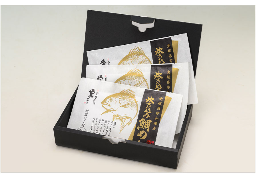 ○名称:惣菜 ○内容量:3包装((1包装150g(真鯛100g、だし50g)×3) ○原材料名:真鯛(愛媛県産)(養殖)、だし(醤油、みりん、昆布調味料、その他)/調味料(アミノ酸等)、(一部に乳成分・小麦・大豆・豚肉・鶏肉・ゼラチン・ごまを含む) ○配送形態:冷凍 (宅配BOX・置配不可) ○保存方法:冷凍 ○賞味期限:製造日より364日 ○熨斗:不可 ○名入れ:不可 ○包装:可 ○手提げ:不可 ○荷姿:化粧箱 ○備考:品質に影響が出る恐れがございますため、再凍結はお控え下さい。解凍後は速やかにお召し上がり下さい。たれにごま・鰹節等が沈殿していることがありますが、製品としての品質に問題はありません。 ※ご飯は付属しませんので、別途ご用意ください。 ○製造者:【辻水産株式会社】 〒798-0003 愛媛県宇和島市住吉町3丁目1番1号