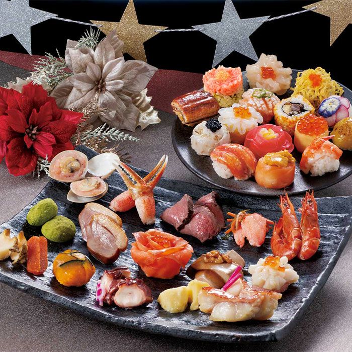 ○名称:惣菜 ○内容量: 【華てまり15個セット】蕪花手毬、明太高菜手毬、スイートポテト手毬、フグ手毬、うなぎ手毬、ラディッシュ華てまり、いくら錦糸巻、イカ菊花手毬、帆立菊花手毬、海老手毬、生うにトロサーモン巻、本ずわい手毬、穴子たまご手毬、プルコギロール、トロはらすサーモン手毬 各1個 【オードブル】ずわい蟹爪、きんき西京焼、蛸のやわらか煮、煮あわび・からすみ博多盛り、合鴨ロース、海老つや煮、ほたて菊花真丈、スモークサーモン華造り、和牛ローストビーフ、くるみ豆腐、丸ずわい松前漬け、蛤真丈、南瓜包み蒸し、 モッツアレラチーズの味噌漬け、抹茶大福 ○原材料名: 【華てまり】 ご飯(米(国産))、調味酢、ゆでがに、煮穴子、鰻蒲焼、いくら醤油漬け、焼きとうもろこし、ラディッシュ浅漬け、アトランティックサーモン(ノルウェー)、昆布締めホタテ、いか、しめこはだ、ローストビーフ、生うに、平錦糸玉子、えび、味付け牛肉、刻み錦糸玉子、玉子焼、ホンシメジ、ステーキソース、魚介類加工品、海苔、オクラ、味付け山椒、加工わさび、食用乾燥花/安定剤(加工澱粉、アカシア、ソルビット)、調味料(アミノ酸等)、トレハロース、酒精、着色料(カラメル、クチナシ、紅麹、黄4、赤40)、pH調整剤、乳酸Na、甘味料(甘草)、増粘剤(加工澱粉、増粘多糖類)、V.B1、加工澱粉、香辛料、香料、酸化防止剤(V.C、亜硫酸塩)、酸味料、(一部にえび・かに・小麦・卵・乳成分・いか・いくら・牛肉・ごま・さけ・さば・大豆・豚肉・りんご・ゼラチンを含む) 【オードブル】 西京漬けのたれ(国内製造)、はまぐり、バナメイエビ、きんき、スモークサーモンスライス、和生菓子、まだこ、牛肉、くるみ豆腐、チーズ、合鴨ロース、あわび、冷凍ゆでガニ、ホタテ貝柱、くるみ飴炊き、南瓜ペースト、いくら醤油漬け、からすみ、ステーキソース、いか人参、南瓜スライス、本みりん、ズワイガニ剥き身、砂糖、クリーム、こいくちしょうゆ(本醸造)、だしパック、関ケ原たまり、小豆、清酒、赤酒又は雑酒、片栗粉、卵、小えび(素干し)、塩または食塩、金箔/加工澱粉、調味料(アミノ酸等)、ソルビット、ポリリン酸Na、トレハロース、乳化剤、酵素、酸化防止剤(エリソルビン酸Na、V.C)、増粘剤(キサンタン)、発色剤(亜硝酸Na)、保存料(安息香酸Na、ソルビン酸K、ポリリジン)、甘味料(甘草)、着色料(赤102、カラメル、クチナシ)、V.B1、ユッカ抽出物、酸味料、酒精、乳酸Ca、(一部にえび・かに・くるみ・小麦・卵・あわび・いか・いくら・牛肉・ごま・さけ・さば・大豆・豚肉・りんごを含む) ○配送形態:冷凍 (宅配BOX・置配不可) ○保存方法:冷凍 ○賞味期限:製造日より180日 ○熨斗:可 ○名入れ:可 ○包装:風呂敷(2重包装不可) ○手提げ:不可 ○荷姿:ダンボール ○備考:解凍後はその日のうちにお召し上がりください。 ○販売者:【株式会社せんざん】 〒234-0054 神奈川県横浜市港南区港南台3-24-7 ○製造者:【せんざんセントラルキッチン】 〒235-0042 神奈川県横浜市磯子区上中里町267 <おすすめ用途> 自宅用 手土産 お歳暮 お年賀 お中元 敬老の日 ギフト プレゼント 贈り物 お礼 お返し ご挨拶 結婚祝 内祝い 誕生日 卒業 <贈る相手> 女性 男性 友人 家族 祖母 祖父 孫