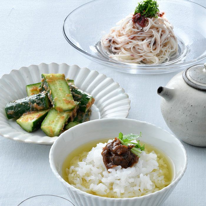 生産者が自社農園で育てた完熟の紀州南高梅を使用。枕崎産本枯節が豊かな風味を添える「かつお梅肉」、北海道産昆布の旨みが絡む「こんぶ梅肉」、国産ハチミツと合わせた「はちみつ梅肉」の3種。のせて、和えて、ディップにも。多彩な料理に使える万能ペーストだ。
