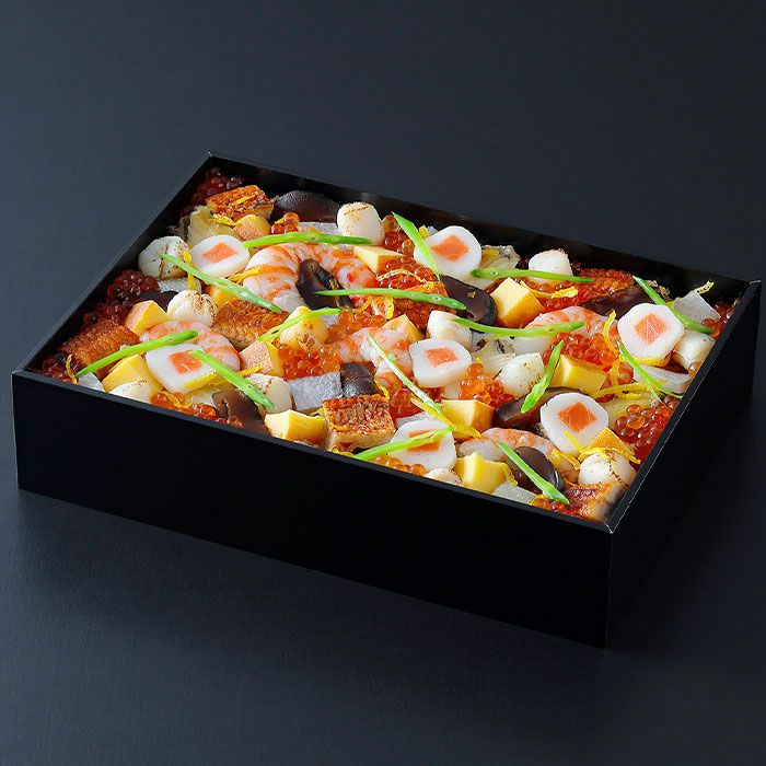 いくら、エビ、うなぎ、鮑、厚焼玉子、小鯛ささ漬、小川巻などの素材をふんだんに散りばめたちらし寿司。彩り美しい一段折は、ご家族ご友人のお集りや大切なお席に華を添えます。小さなお子様からご年配の方まで幅広くご好評いただいている下鴨茶寮謹製「華ちらし寿司」を、おもてなし料理としてご家族皆様でお愉しみください。