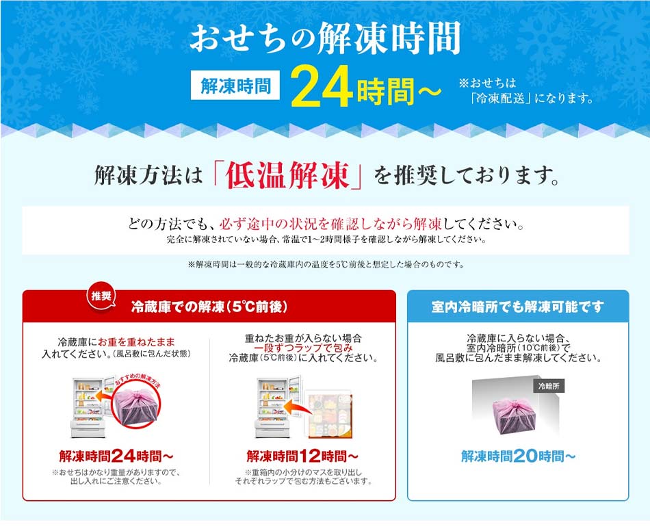 ○備考:解凍時間で冷蔵庫で24時間程解凍してお召し上がりください。8寸二段、外寸:25×25×11.5(cm)