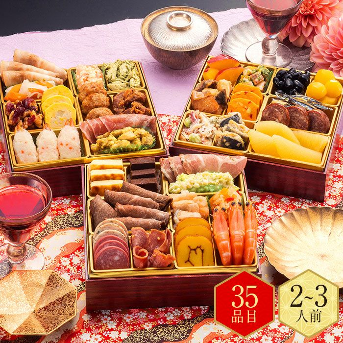 他の画像を見る 本格定番和洋中おせち【 初赤重 】三段重(約2~3人前) 少人数で幅広い世代で楽しめる豪華な和洋中おせち おせち 2026 本格定番和洋中おせち【 初赤重(はつあかじゅう) 】三段重(約2~3人前) 送料無料 ※12月30日お届け 予約商品 こちらは予約商品です 予約販売価格 ¥ 16,200 税込 予約受付期間 2025/10/07 10:00 〜 2025/11/30 23:59 世代や好みを問わず楽しむことができるおもてなしにもぴったりの特別なごちそう。和・洋・中、三つの味を一度に楽しめる贅沢なおせちで新年の食卓を笑顔に彩ります。 詳細を見る お気に入りに登録する