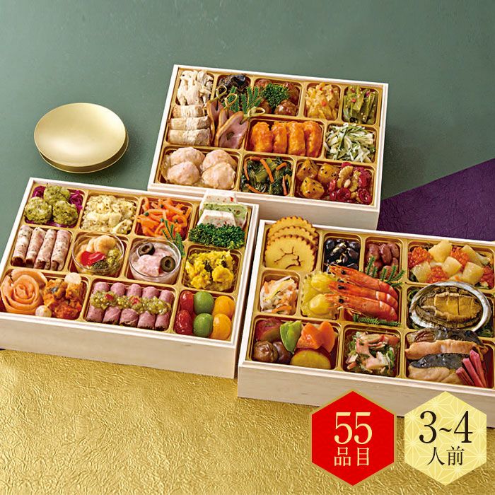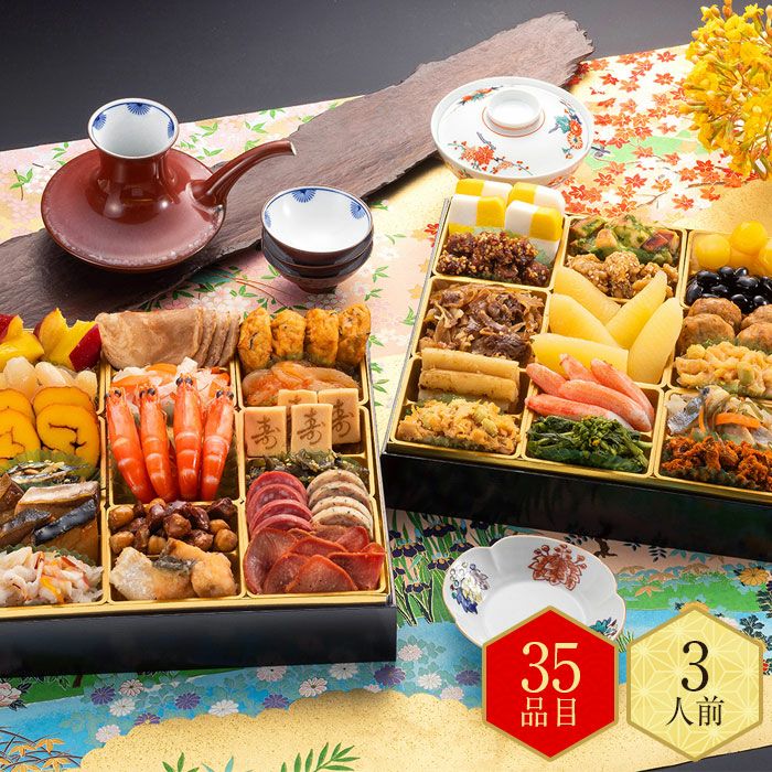 他の画像を見る 豪華定番三段重おせち【高砂】(約2~3人前) 鮑や黒毛和牛ステーキなどの本格食材を堪能できる豪華おせち おせち 2026 豪華定番三段重おせち【高砂】(約2~3人前) 送料無料 ※12月30日お届け 予約商品 こちらは予約商品です 予約販売価格 ¥ 18,000 税込 予約受付期間 2025/10/07 10:00 〜 2025/11/30 23:59 少人数でお集まりの方におすすめです。黒毛和牛や鮑など豪華食材をふんだんに使用し、お正月の晴れの日のためにご用意いたしました。 詳細を見る お気に入りに登録する