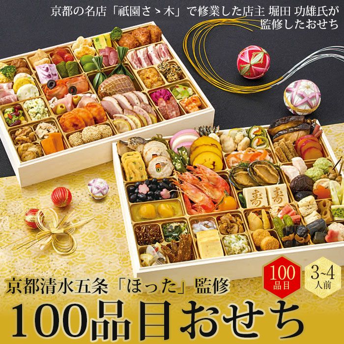 他の画像を見る 京都清水五条「ほった」監修 100品目おせち 京都の名店「祇園さゝ木」で修業した店主が監修したおせち おせち 2026 京都清水五条「ほった」監修 100品目おせち 送料無料 ※12月30日お届け 予約商品 こちらは予約商品です 予約販売価格 ¥ 26,550 税込 予約受付期間 2025/10/07 10:00 〜 2025/11/30 23:59 京都の名店「祇園さゝ木」で修業した店主 堀田 功雄氏が監修したおせち。二段で100品目を詰合せた豪快なおせちです。 詳細を見る お気に入りに登録する