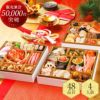 ○名称:おせち ○内容量:計48品目 約4人前 箱サイズ1段(23.6×23.6×高さ4.0cm)×3段 付属品:お雑煮用濃縮だししょうゆパウチ(4人前) ○アレルゲン:えび、かに、くるみ、小麦、卵、乳成分、いか、いくら、さけ、さば、大豆、鶏肉、豚肉、もも、ゼラチン ○配送形態:冷凍 ○保存方法:要冷凍-18℃以下 ○賞味期限:2026年1月31日(冷凍状態のまま) ○熨斗:不可 ○包装:不可 ○備考:冷蔵庫にて約24時間解凍 ○販売者:【おとなの週末お取り寄せ倶楽部】
