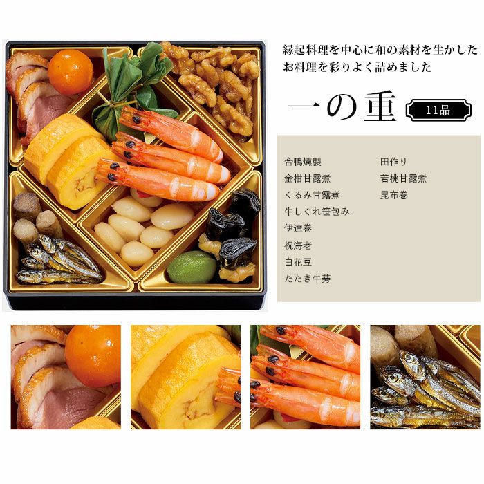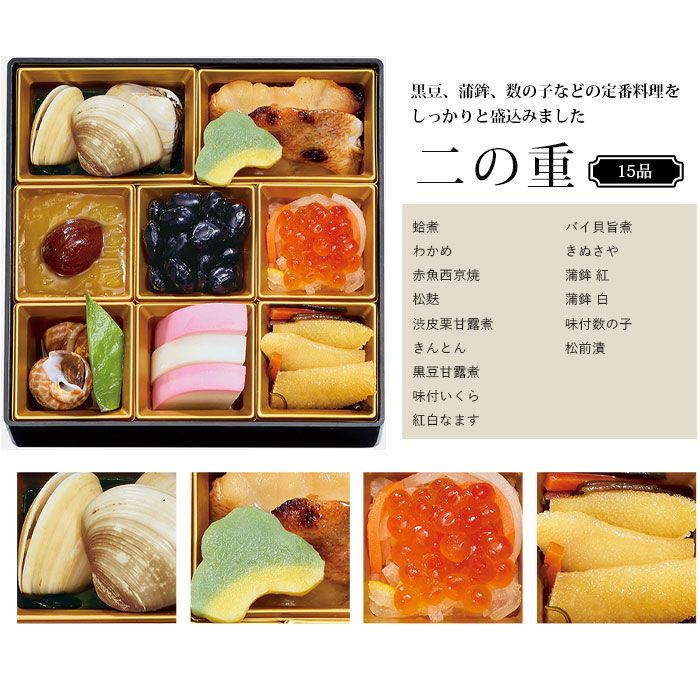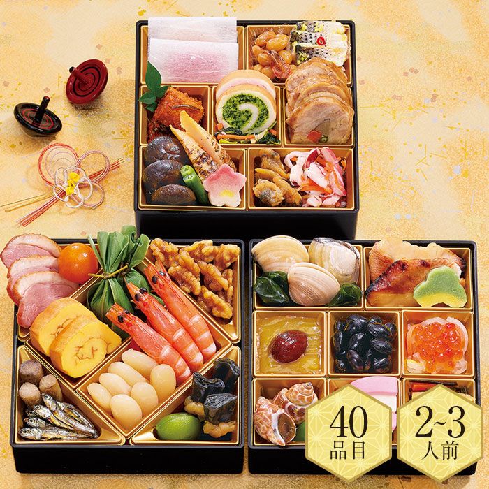 他の画像を見る 豪華定番三段重おせち【高砂】(約2~3人前) 鮑や黒毛和牛ステーキなどの本格食材を堪能できる豪華おせち おせち 2026 豪華定番三段重おせち【高砂】(約2~3人前) 送料無料 ※12月30日お届け 予約商品 こちらは予約商品です 予約販売価格 ¥ 18,000 税込 予約受付期間 2025/10/07 10:00 〜 2025/11/30 23:59 少人数でお集まりの方におすすめです。黒毛和牛や鮑など豪華食材をふんだんに使用し、お正月の晴れの日のためにご用意いたしました。 詳細を見る お気に入りに登録する