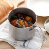 沸かす、茹でる、煮る、炒める、揚げる、炊く、和える、保存するが一つで8役使えるステンレス製マルチポットです。丸みのあるフォルムなので対流によりお湯が沸きやすく、ご飯もおいしく炊けます(2合まで)。注ぎ口がついているのでケトルやミルクパンのようにも使えます。深さがあるので和え物も混ぜやすく、揚げ物調理も油が飛び散りにくいです。レトルトパックも立てて温めることができます。ガラス蓋は中が見えるので外から調理具合を確認でき、他の食材調理中でも同時進行で調理しやすい仕様になっています。しかも蓋のハンドルの取っ手の凹部に調理箸を一時置きできるので、調理時の箸の置き場にも困らず、時短調理につながります。