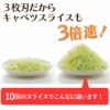 家庭用スライサーでは業界で初めて3枚刃を採用!文字通り3倍の速さで調理できるスピードスライサーです。調理の手間を大幅に短縮することができ、特に手間のかかるキャベツの千切りに威力を発揮する時短調理器具です。切れ味を追求した波形の切れ味で抵抗が少なくスムーズなスライスを実現。一度に3カットすると食材にかかる抵抗も大きくなりますが、この波刃なら、その抵抗を感じさせず、まるで1カットする時と変わりないような軽い力でスピーディにスライスすることができます。手指をガードする安全ホルダー付き。透明で食材が見えやすく、鋭利な△形のリブで、食材をしっかりとグリップします。また、ボディにセットすることができて、刃の安全カバーとしても機能を果たします。