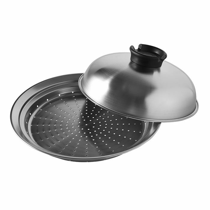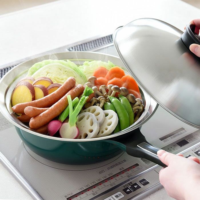 他の画像を見る のせるだけで簡単蒸し器24~26cm 手軽に本格的な蒸し料理ができるステンレス製のスチーマー のせるだけで簡単蒸し器24~26cm 販売価格 ¥ 6,000 税込 お手持ちのフライパンや鍋にのせるだけで、本格的な蒸し料理ができるステンレス製のスチーマーです。蒸しプレート全体に蒸気穴を設置、下からの蒸気がまんべんなく食材に当たります。ドーム型の蓋は加熱蒸気を対流させ食材の加熱ムラがなくふっくらしっとり調理します。 詳細を見る お気に入りに登録する