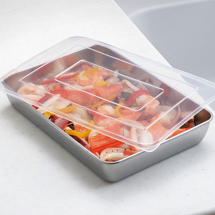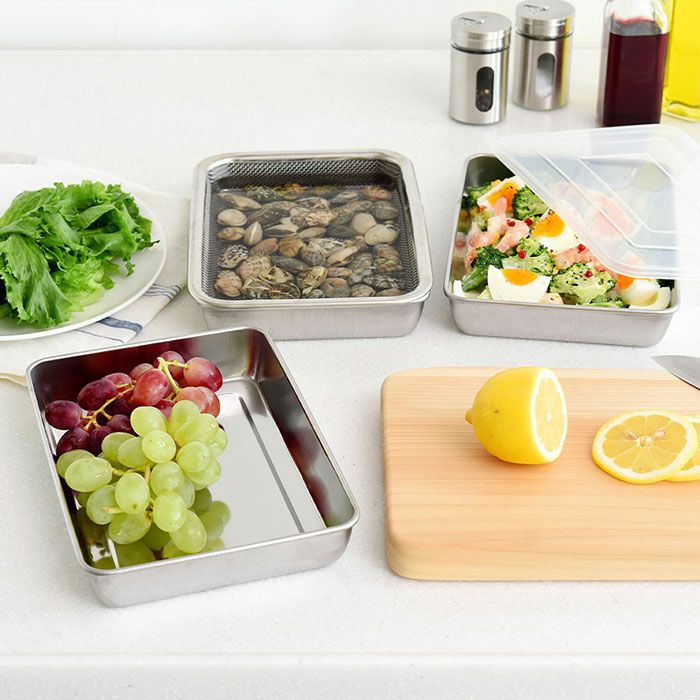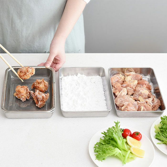 他の画像を見る フタ付きステンレスバット角型ザルセット 揚げ物準備から保存まで便利な透明蓋付きステンレスバッド フタ付きステンレスバット角型ザルセット 販売価格 ¥ 4,180 税込 ステンレスバッドとザルに収納に便利な蓋をセットした、蓋付きステンレスバッドの3個と角型ザルセットです。透明蓋なので中身が見えやすく、積み重ねることができるので冷蔵庫でも省スペースに収納できます。揚げ物の下ごしらえに使いやすい3個セット。余っても蓋をしてそのまま保存できます。バッドはオーブン用のケーキ型や寒天・ゼリーなどの冷菓子の型としても使用できます。 詳細を見る お気に入りに登録する
