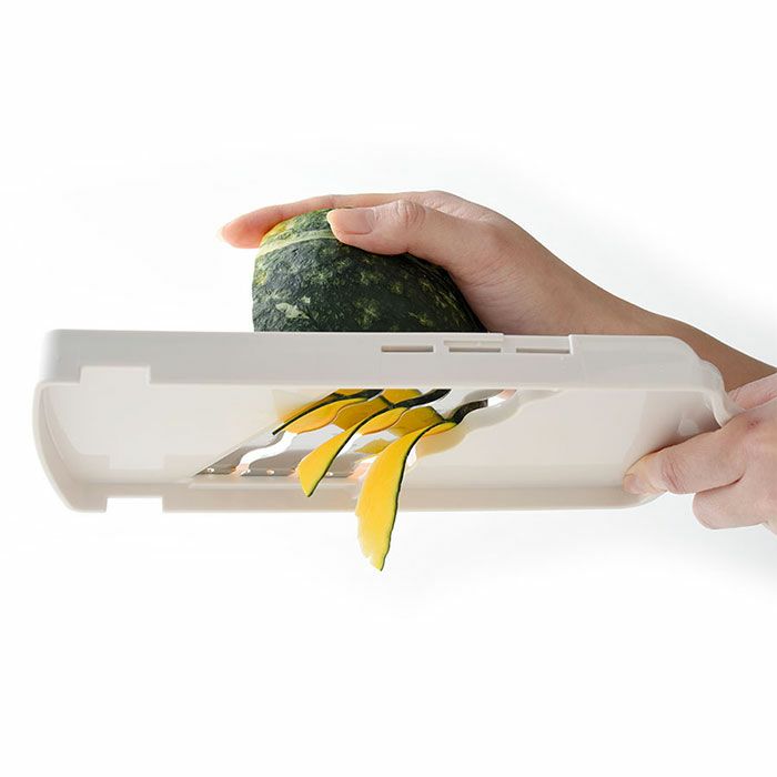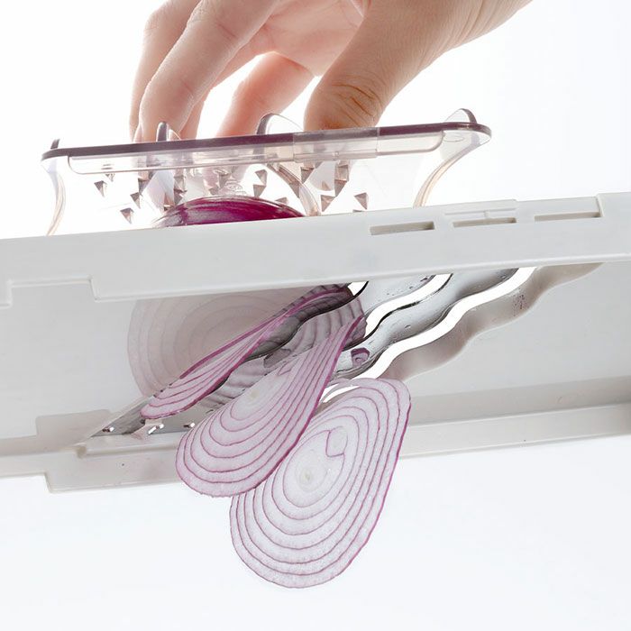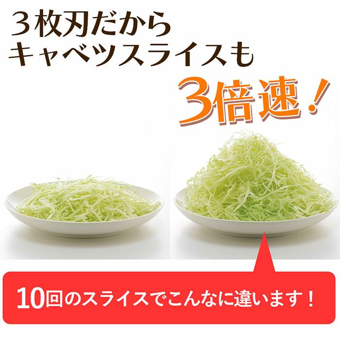 他の画像を見る 3倍速トリプルウェーブ 3枚刃で3倍速!スピーディなスライスを実現 3倍速トリプルウェーブ 販売価格 ¥ 3,160 税込 家庭用スライサーでは業界で初めて3枚刃を採用!文字通り3倍の速さで調理できるスピードスライサーです。調理の手間を大幅に短縮することができ、特に手間のかかるキャベツの千切りに威力を発揮する時短調理器具です。切れ味を追求した波形の切れ味で抵抗が少なくスムーズなスライスを実現。一度に3カットすると食材にかかる抵抗も大きくなりますが、この波刃なら、その抵抗を感じさせず、まるで1カットする時と変わりないような軽い力でスピーディにスライスすることができます。手指をガードする安全ホルダー付き。透明で食材が見えやすく、鋭利な△形のリブで、食材をしっかりとグリップします。また、ボディにセットすることができて、刃の安全カバーとしても機能を果たします。 詳細を見る お気に入りに登録する