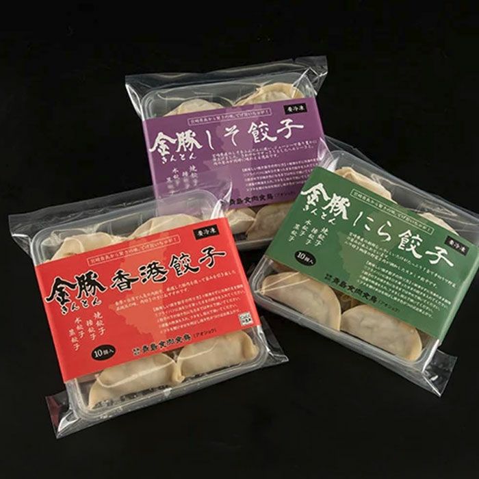 香港・台湾の家庭で人気の肉餃子の「金豚 香港餃子」。にんにく不使用、豚肉の旨味を引き出しています。「金豚 しそ餃子」は、宮崎県産の紫蘇を使い、爽やかな風味を楽しむ人気の餃子です。「金豚 にら餃子」は、宮崎県産のニラを全て手切りすることで旨味を引き出した自慢の味です。焼き餃子のみならず、蒸す・揚げる・水餃子(スープ仕立て)など、本場香港の飲茶風の食べ方をいろいろお楽しみください。 ※金豚(きんとん)は、横濱の香港飲茶・広東料理名店元オーナーである頼(らい)氏が、「金豚シリーズ」を考案。その店の閉店後は青島食肉食鳥が頼氏監修の元、伝承しています。