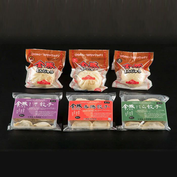 金豚(きんとん)まんじゅうは、厳選した豚の甘み、ぎっしり詰まった筍・椎茸などの手切り具材。食感までこだわった「金豚 豚まん」。横濱名店より受け継がれた自家製黒ごま餡のコクと風味が口の中に広がる「金豚 黒ゴマあんまん」。全国和牛能力共進会4大会連続(第9回~12回大会)内閣総理大臣賞を受賞した「宮崎牛」100%ですき焼き風に贅沢に仕上げた「金豚 宮崎牛すき焼きまん」の3種。餃子は、にんにく不使用、豚肉の旨味を引き出した肉餃子「金豚 香港餃子」。宮崎県産の紫蘇を使い、爽やかな風味を楽しむ「金豚 しそ餃子」。宮崎県産の新鮮なニラを使用。全て手切りすることで旨味を引き出した「金豚 にら餃子」の3種。具材選びと生地と味のバランスを追求しています。 ※金豚(きんとん)は、横濱の香港飲茶・広東料理名店元オーナーである頼(らい)氏が、「金豚シリーズ」を考案。その店の閉店後は青島食肉食鳥が頼氏監修の元、伝承しています。