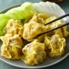 札幌ラーメンの麺生地をのばして作った黄金色の皮が面白い。餡には道産豚肉を使い、札幌産の玉ねぎと地元醸造メーカーの特選丸大豆しょう油で奥行きあるやさしい味に仕上げた。1個35gと大ぶりだが重くなく、パクパクと食べられる。