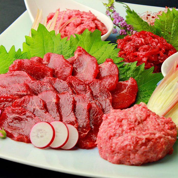 食べたい時に解凍するだけでお手軽に馬刺しがお楽しみいただけます。たれ付き個食包装なので、おすそ分けなどにも最適です。熊本県阿蘇の大自然の中に、約90万坪もの広大な自主ファームにて、栄養豊富な牧草と名水、こだわりの自家製飼料でじっくり肥育した馬肉を使用。千興ファームの鮮馬刺しは馬肉専用と畜場、一貫生産の生食専門工場で製造しています。安全性は国際品質の証明であるSQFを取得しており、その鮮度と旨味は、自然の恵みと愛情が育む味です。
