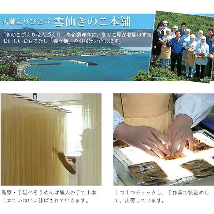 他の画像を見る 養々麺 雲仙きのこ本舗 にゅうめん 自家栽培のきのこがたっぷり入った養々麺 【雲仙きのこ本舗】養々麺(20食) 販売価格 ¥ 10,800 税込 ドラマ「先生のおとりよせ」に登場! 国産小麦の手延べそうめんを特殊製法で仕上げ、お湯を注ぐだけで簡単に美味しいにゅう麺が完成する。スープは枕崎産鰹節と北海道産昆布の合わせダシ。自社栽培のキノコ類を味付けした具材と京都の老舗「一休堂」の京七味も付く。 詳細を見る お気に入りに登録する