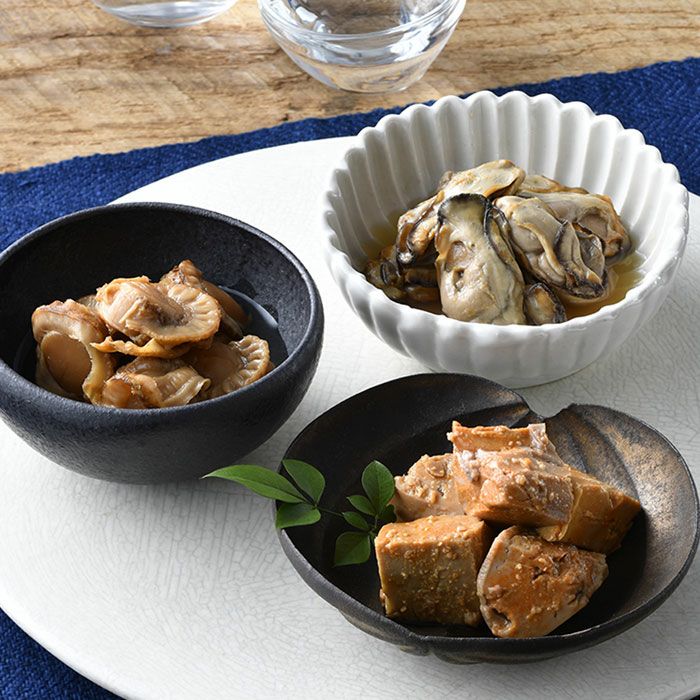 ○名称:水産加工品 ○内容量:あんきも140g(固形量80g)、牡蠣130g(固形量55g)、ほたて130g(固形量55g) ○原材料名: 【あんきも】加熱処理済あんこう肝(中国製造)、清酒(雪室貯蔵「雪中梅」90%使用)、本みりん、砂糖、アミノ酸液、しょうゆ(大豆・小麦を含む)、食塩、かつお節エキス調味料、たん白加水分解物調味料/ソルビトール、調味料(アミノ酸等)、酸味料 【かき】蒸し牡蠣(牡蠣(瀬戸内海産))、清酒、本みりん、砂糖、アミノ酸液、しょうゆ(大豆・小麦を含む)、食塩、かつお節エキス調味料、たん白加水分解物調味料/ソルビトール、調味料(アミノ酸等)、酸味料 【ほたて】蒸し帆立貝(帆立貝(国産))、清酒、砂糖、本みりん、アミノ酸液、しょうゆ(大豆・小麦を含む)、食塩、かつお節エキス調味料、醸造酢、たん白加水分解物調味料/ソルビトール、調味料(アミノ酸等)、酸味料 ○配送形態:冷蔵(宅配BOX・置配不可) ○保存方法:冷蔵 ○賞味期限:出荷日より60日 ○熨斗:不可 〇名入れ:不可 ○包装:不可(メーカー仕様の包装紙) 〇手提げ:不可 ○備考:そのまま小鉢に移し、ご飯のお供に、酒の肴に。ほたてやかきの具材と調味液は炊き込みご飯としても美味しく召し上がれます。 ○製造者:【株式会社三幸 銘品部】〒957-0102 新潟県北蒲原郡聖籠町位守町160-24
