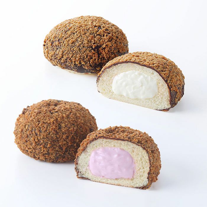 第1弾は九州で愛され続けてきた味「ブラックモンブラン」と岡山で愛され続けてきた味「生クリームパン」、2つが一緒になって誕生した「ブラックモンブラン生クリームパン」です。サッパリとしたバニラアイスみたいなバニラクリームが入った生クリームパンをチョコでコーティングし、クランチをトッピングし、ブラックモンブランの見た目のように仕上げました。第2弾はあまおう苺のクリームが入ったパンをチョコでコーティングし、クランチをトッピング。ブラックモンブランアイス(あまおう苺)をパンで再現しました。どちらも冷凍庫から出して、そのままひんやりアイスのように食べたり、解凍してもしっとり食感でお召し上がり頂くこともできます。