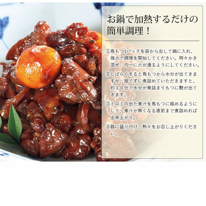 他の画像を見る 山梨名物 鳥もつ煮(3パック) 山梨県甲府のご当地グルメ鶏もつ煮で晩酌を 山梨名物 鳥もつ煮(3パック) 販売価格 ¥ 3,480 税込 レバー、砂肝、ハツ、きんかんが特製のたれと一緒に密封されており、10分間煮詰めるだけで簡単に出来立ての味がいただける。甘辛い味付けはご飯のお供はもちろん、酒の肴にも最適 詳細を見る お気に入りに登録する