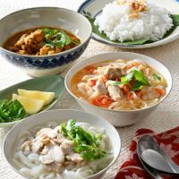 味が濃い。ココナツチキンカレーは薄味で美味しかった。串焼きとスパイシーグリルチキンは肉自体に濃い味が付いていて、それにピーナツソース、トマトサルサソース、辛くないチリソースが付いてます。バリ行きたいなと思ってましたが、こんなに味付けが濃いのか、、と旅行前に分かってよかったです。ナシゴレンも味濃いです。酒のつまみに珍しいものが欲しい時には良いと思います。 -