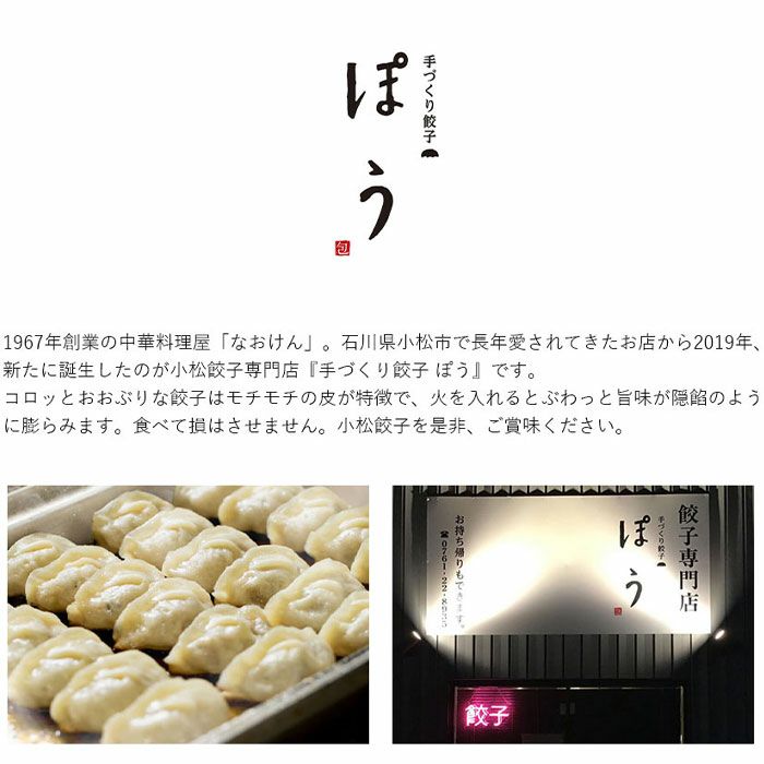 他の画像を見る 北陸石川県で50年以上地元民に愛されてきた小松名物餃子 小松名物ぽうの大きな餃子(プレーン12個×3袋) 販売価格 ¥ 4,880 税込 北陸石川県で50年以上地元民に愛されてきた小松名物餃子 詳細を見る お気に入りに登録する
