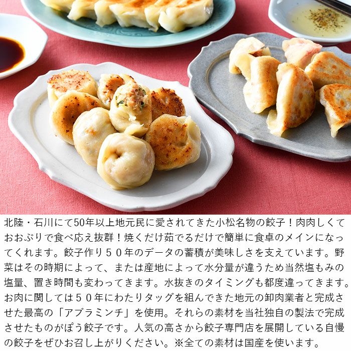 他の画像を見る 石川県で地元民に愛されてきた小松餃子 小松名物ぽうの大きな餃子人気詰め合わせセット(プレーン・生姜・梅) 販売価格 ¥ 4,880 税込 石川県で地元民に愛されてきた小松餃子 詳細を見る お気に入りに登録する