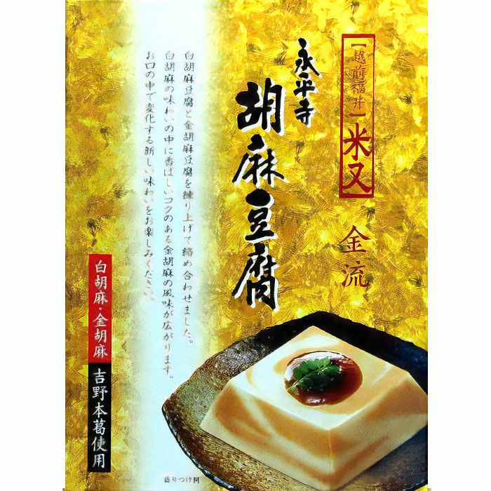 他の画像を見る 白胡麻豆腐と金胡麻豆腐をマーブル状に練り上げた逸品 永平寺 胡麻豆腐(金流)4個入4Pセット 販売価格 ¥ 5,400 税込 白胡麻豆腐と金胡麻豆腐をマーブル状に練り上げた逸品 詳細を見る お気に入りに登録する