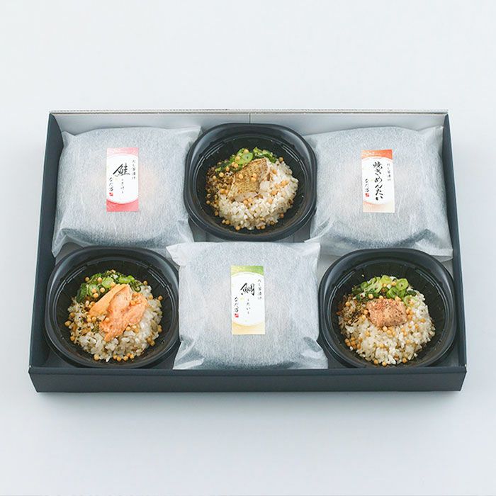 他の画像を見る 漁師の伝統が生んだ、生のお茶漬け5種 漁師茶漬け5種セット(アジ、タイ、アサリ、エビ、ウニ) 販売価格 ¥ 6,100 税込 漁師の伝統が生んだ、生のお茶漬け5種 詳細を見る お気に入りに登録する