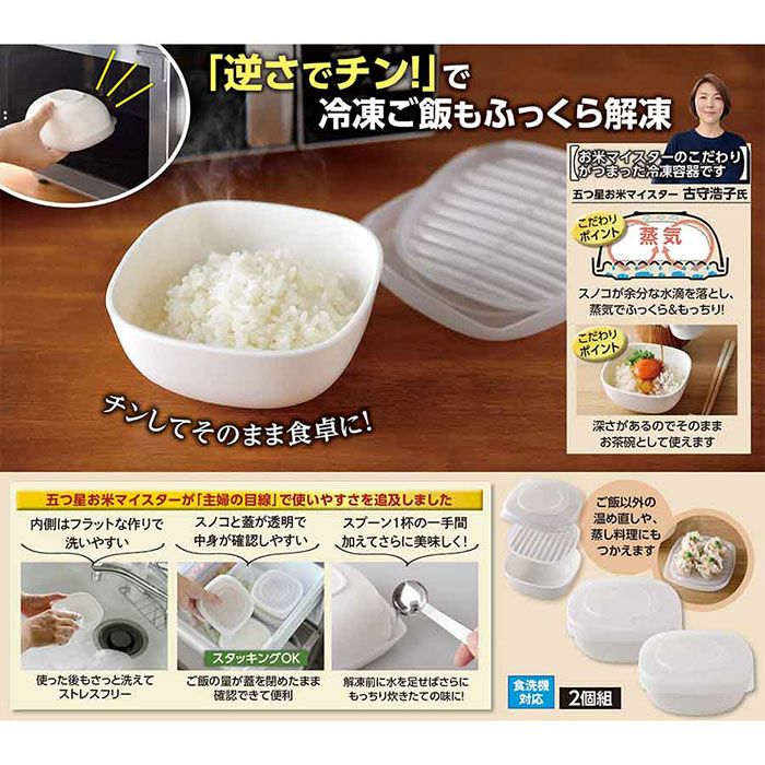 他の画像を見る 五つ星お米マイスターがこだわった冷凍も解凍もできる便利茶碗 ご飯がう米わん(2個入) 販売価格 ¥ 2,350 税込 五つ星お米マイスターがこだわった冷凍も解凍もできる便利茶碗 詳細を見る お気に入りに登録する