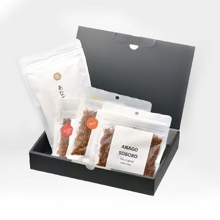 他の画像を見る あなごそぼろ3種とお出汁は毎日の料理に活躍するセット あなごそぼろ・あなご出汁セット 販売価格 ¥ 5,900 税込 あなごそぼろ3種とお出汁は毎日の料理に活躍するセット 詳細を見る お気に入りに登録する