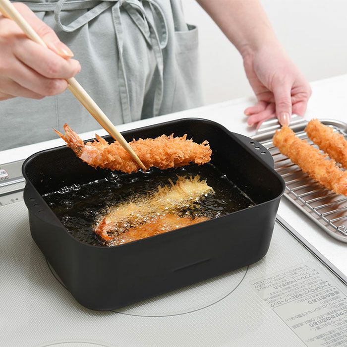 他の画像を見る エビフライや春巻きなど細長い揚げ物にも便利! 天ぷら鍋 角型ワイド(アミ・フタ付) 販売価格 ¥ 5,650 税込 エビフライや春巻きなど細長い揚げ物にも便利! 詳細を見る お気に入りに登録する