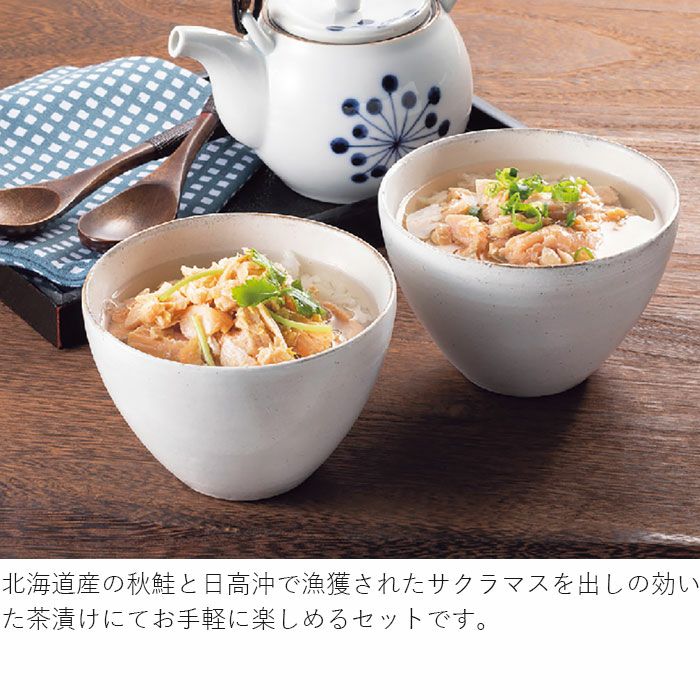 他の画像を見る 北海道日高沖で獲れた秋鮭とサクラマスをお茶漬けで楽しむ 秋鮭・桜鱒のだし茶漬け 販売価格 ¥ 4,780 税込 北海道日高沖で獲れた秋鮭とサクラマスをお茶漬けで楽しむ 詳細を見る お気に入りに登録する