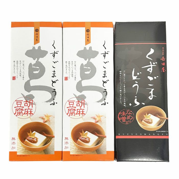 他の画像を見る 口どけなめらか、香ばしさ引き立つごまどうふ 葛ごまどうふ2本、本葛ごまどうふ(なめみそ付)1本 販売価格 ¥ 3,560 税込 口どけなめらか、香ばしさ引き立つごまどうふ 詳細を見る お気に入りに登録する