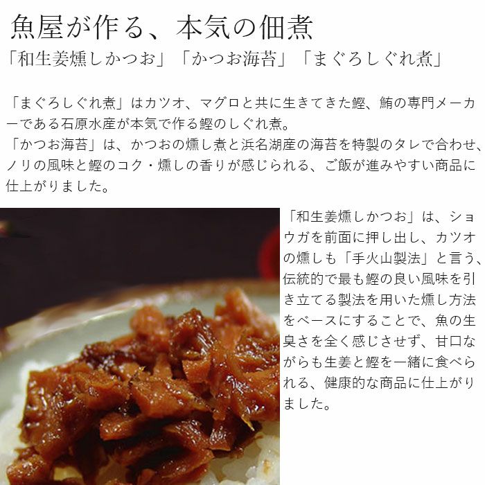 他の画像を見る マグロとカツオの持ち味を生かした佃煮珍味セット まぐろ・かつお珍味佃煮セット 販売価格 ¥ 3,700 税込 マグロとカツオの持ち味を生かした佃煮珍味セット 詳細を見る お気に入りに登録する