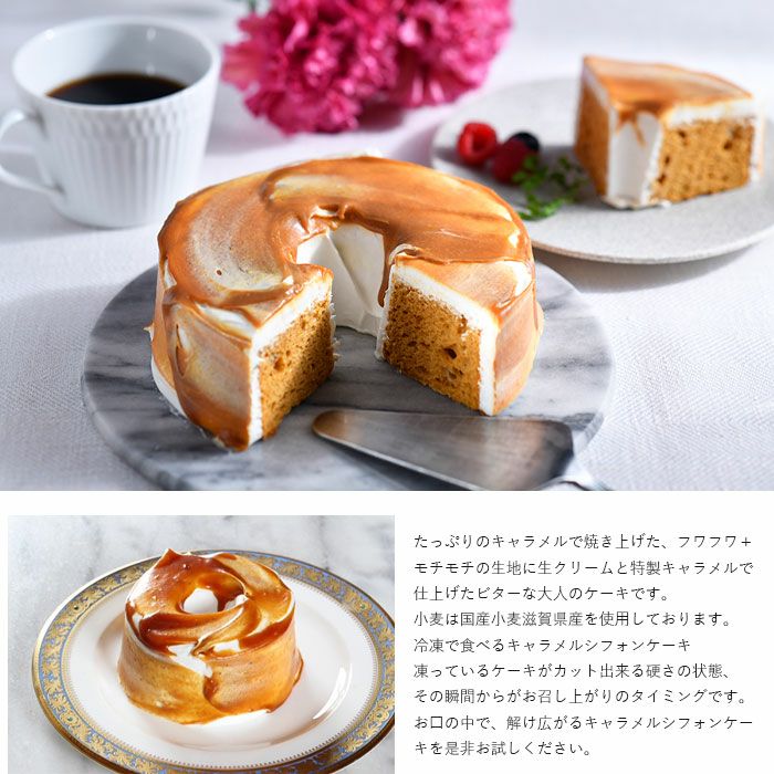 他の画像を見る 特製キャラメルで仕上げたビターな大人のシフォンケーキ キャラメルシフォンケーキ 販売価格 ¥ 4,000 税込 特製キャラメルで仕上げたビターな大人のシフォンケーキ 詳細を見る お気に入りに登録する