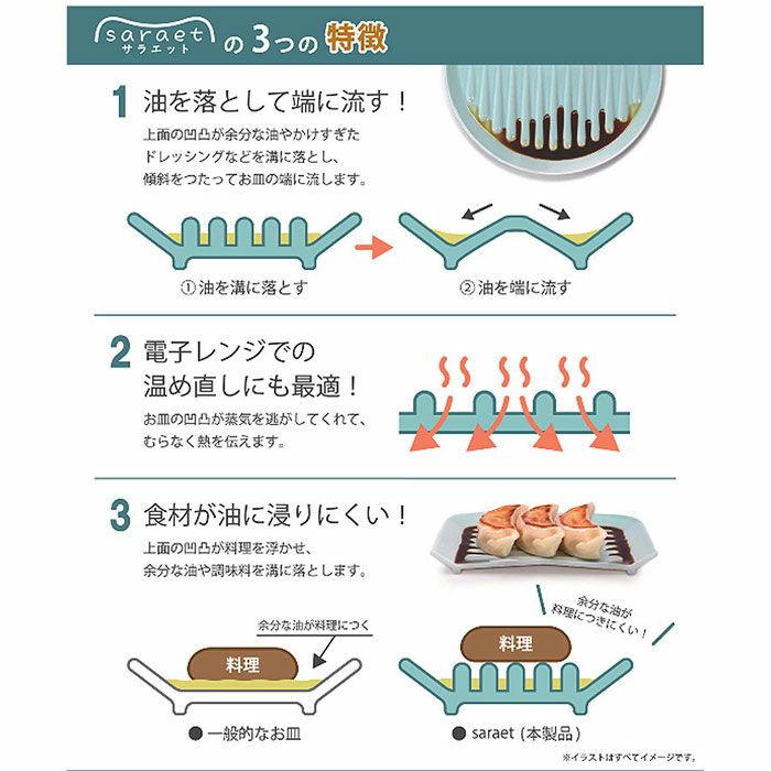 他の画像を見る 余分な油やタレを端におとしてくれるヘルシーなお皿 saraet サラエット ( タレ皿 ) 3色セット 販売価格 ¥ 2,660 税込 余分な油やタレを端におとしてくれるヘルシーなお皿 詳細を見る お気に入りに登録する