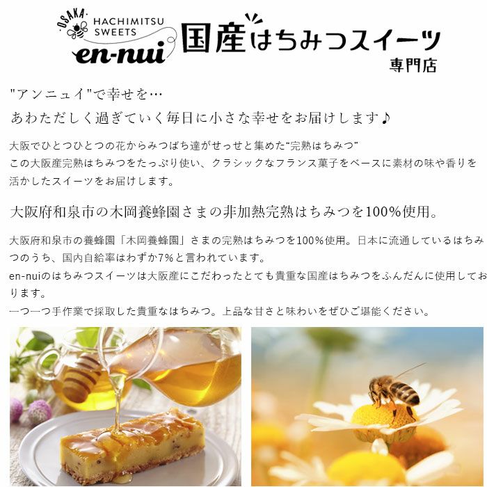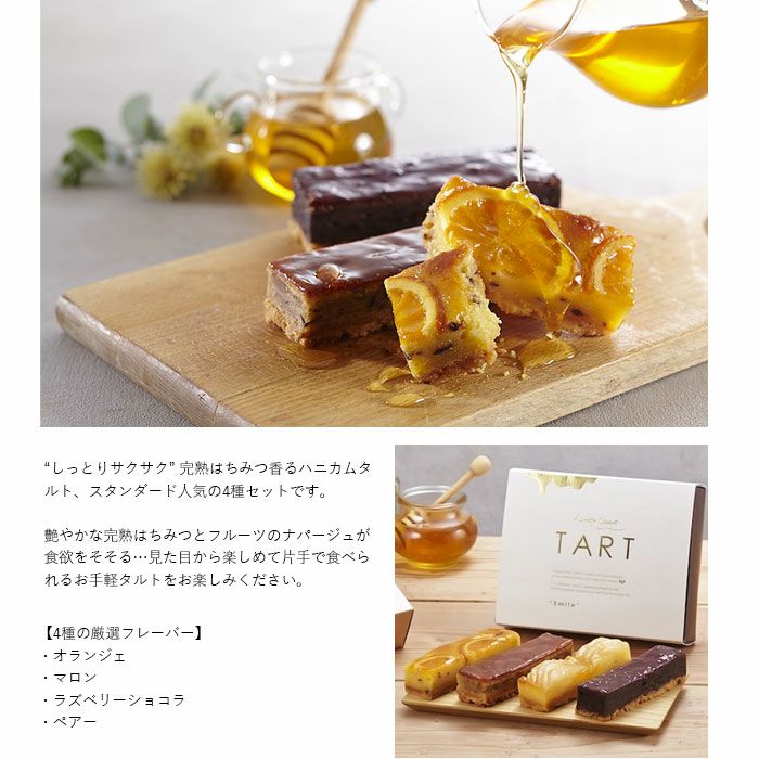 他の画像を見る 非加熱完熟はちみつを100%使用した、しっとりサクサクタルト ハニカムタルト4個セット 販売価格 ¥ 3,360 税込 非加熱完熟はちみつを100%使用した、しっとりサクサクタルト 詳細を見る お気に入りに登録する