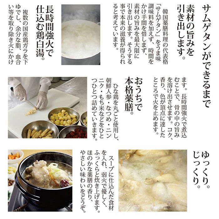 他の画像を見る お家でほろほろに煮込まれた丸鶏の薬膳参鶏湯を味わう 【大東園】サムゲタン 丸鶏 販売価格 ¥ 5,300 税込 お家でほろほろに煮込まれた丸鶏の薬膳参鶏湯を味わう 詳細を見る お気に入りに登録する
